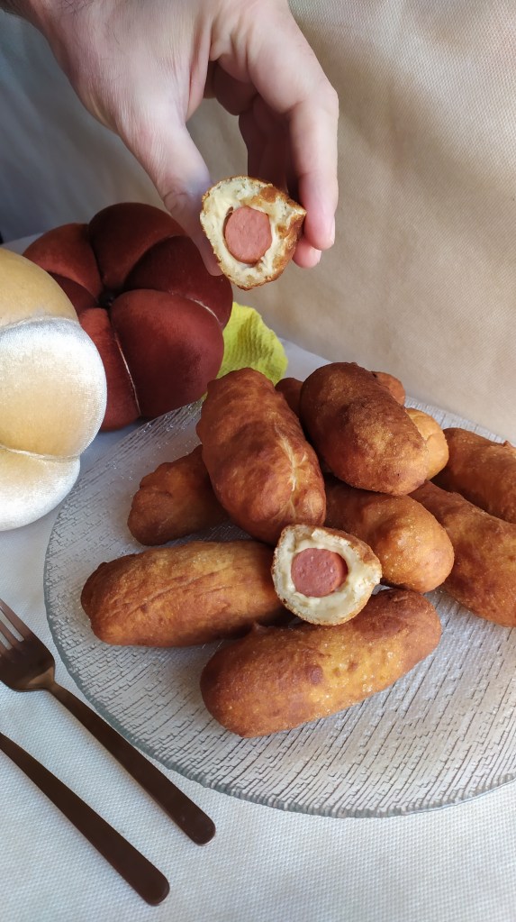 Μόλις η ζύμη μας είναι έτοιμη, χωρίζουμε σε μικρά μπαλάκια τα οποία ανοίγουμε με το χέρι σε δισκάκια (αν δυσκολευόμαστε να το ανοίξουμε λαδώνουμε λίγο τα χέρια μας). Βάζουμε στο κέντρο ένα λουκανικάκι και κλείνουμε καλά από όλες τις μεριές το πιτάκι μας ώστε η ζύμη να αγκαλιάσει την γέμιση μας. Τηγανίζουμε με μέτρια φωτιά σε ηλιέλαιο σε ένα βαθύ σκεύος ώστε η μαγειρευτούν καλά από όλες τις μεριές . Μόλις πάρουν το κλασσικό χρυσαφένιο χρώμα τους είναι έτοιμα