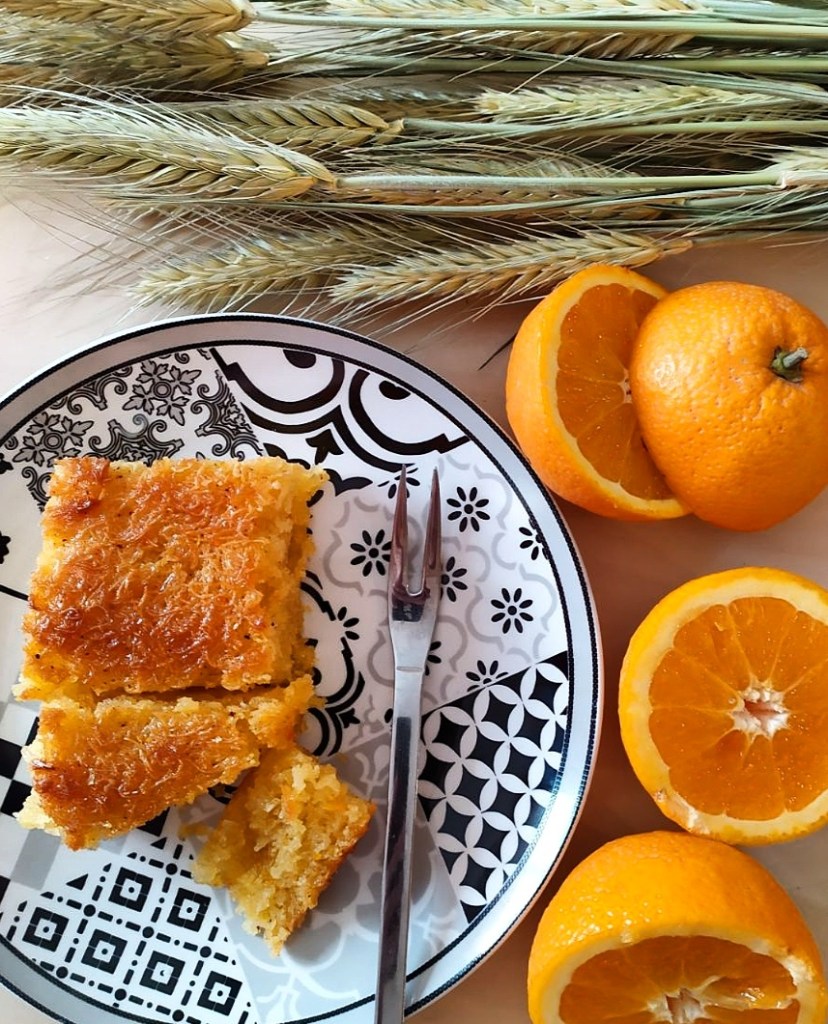 Μόλις το γλυκό είναι έτοιμο, χαράζουμε σε κομμάτια και σιροπιάζουμε με μιά κουτάλα της σούπας