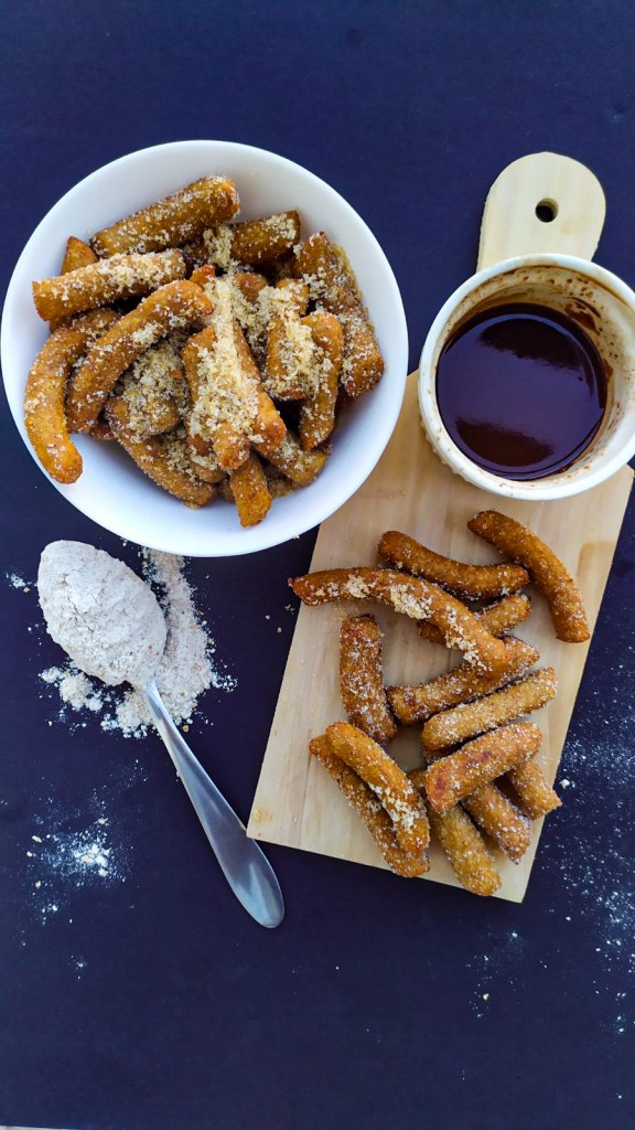 Churros λέγονται οι μεξικάνικοι λουκουμάδες. Churros οι Αθηναίοι τρώμε πιο συχνά και απο τους αληθινούς λουκουμάδες. Γιατι αληθινός λουκουμάς είναι μόνο ο πανηγυριώτικος! Ας πούμε λοιπόν ότι είμαστε σε ένα πανηγύρι στο Μεξικό και θέλουμε να φάμε τσουρος! Ή καλύτερα, ας πούμε ότι είμαστε στην Disneyland, όπου τα γλυκά αυτά ζυμαράκια έχουν την τιμητική τους. Κατά καιρούς κυκλοφορούν πολλές συνταγές, κυρίως με διαφορετικές αναλογίες, καθώς η ζυμη των churros κατά βάση ειναι μια ζύμη σού. Το foodouple. gr σκέφτηκε και σας παρουσιάζει όμως μια εκδοχή με αλεύρι ολικής άλεσης που θα σας ξετρελάνει!