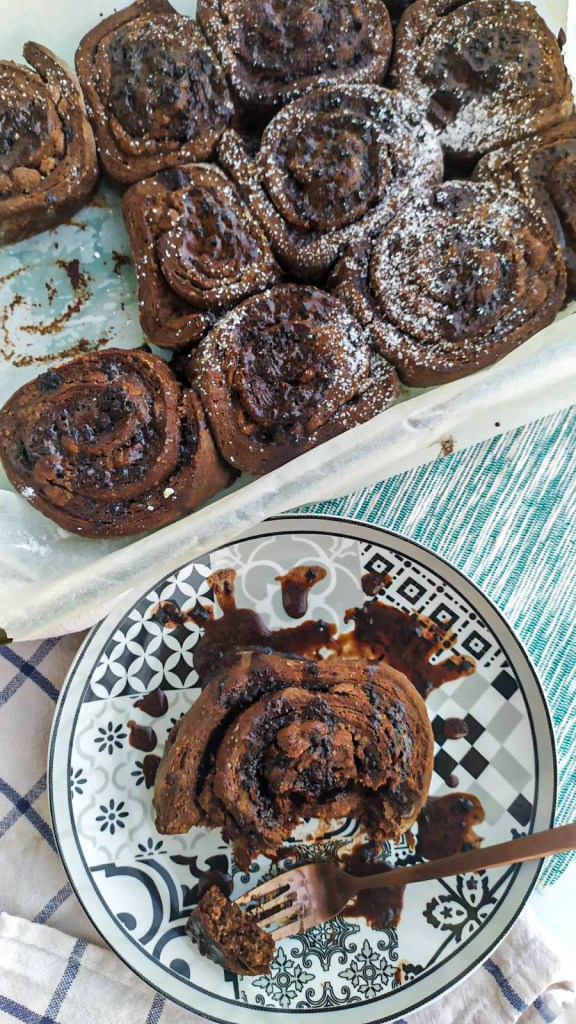 Όλοι λατρεύουν τα cinnamon rolls. Ένα ρολό κανέλας είναι ένα γλυκό ρολό που σερβίρεται συνήθως στη Βόρεια Ευρώπη και τη Βόρεια Αμερική. Πρόκειται ουσιαστικά για μια ζύμη μαγιάς η οποία ανοίγεται και γεμίζεται με κανέλα και ζάχαρη , ρολάρεται και κόβεται σε ρολό. Οι δαιμόνιοι fooouple.gr όμως γέμισαν μεν ζύμη αλλά τί ζύμη; Σοκολατενία ζύμη! Παρτε μαγιά και κακάο και ετοιμαστείτε . Θα γίνει χαμούλης.