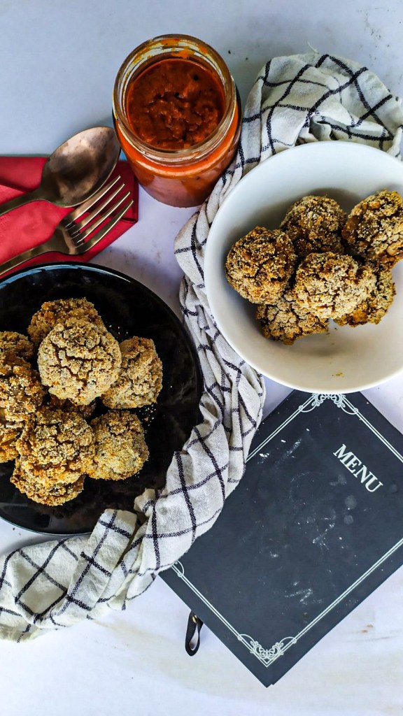 Τοποθετούμε τα μπαλάκια σε λαδόκολλα και ψήνουμε στους 180 βαθμούς αέρα μέχρι να χρυσίσει το παναρισμα.