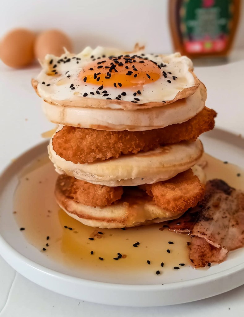 Είναι το chicken and waffles το νέο food trend στην Ευρώπη και την Αμερική; Είναι ναι! Αυτό λοιπόν το Πενσυλβανέζικο πιάτο που θα παρουσιάσουμε για σήμερα σε μία νέα εκδοχή, απευθείας απο το μπραντσαδικο του foodouple.gr. Η πρόταση μας έχει αντί για βάφλες , pancakes ! Το τηγανητό κοτόπουλο, συνοδεύεται απο τηγανιτό αυγό , μαυροσούσαμο και σιρόπι σφενδάμου, φέρνοντας το αμερικάνικο umami στο πρωινό σας