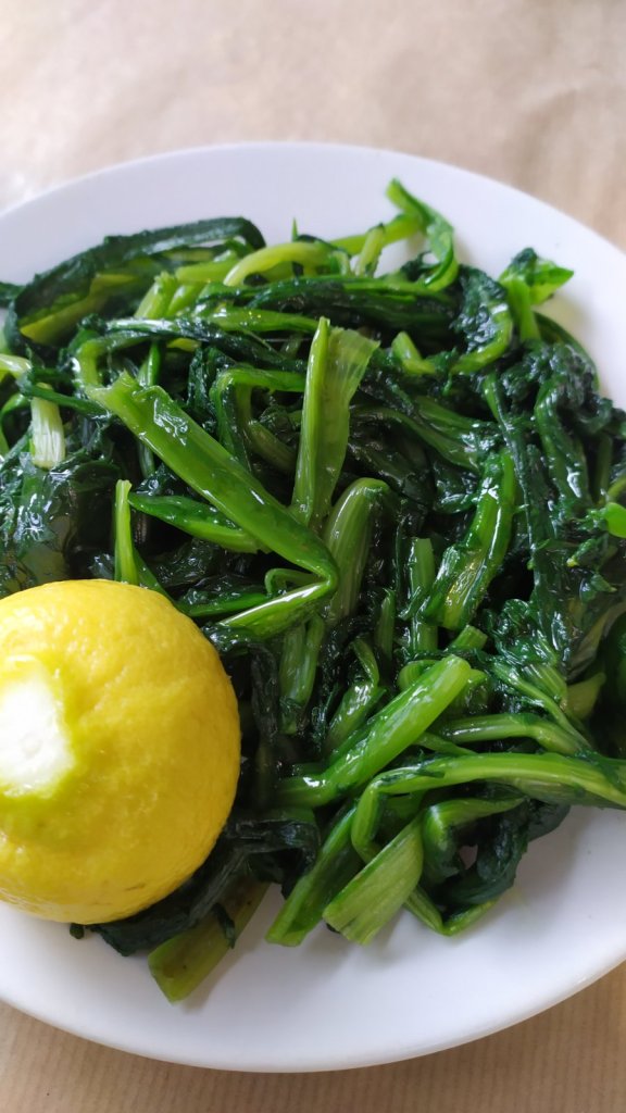 Πήραμε χόρτα για σαλάτα, που ηταν πολύ νόστιμα αλλά κυρίως σωστά βρασμένα και με πράσινο ζωντανό χρώμα .