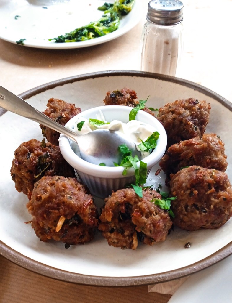 Επειδή σαν οικογένεια ωστόσο , θέλαμε να δοκιμάσουμε παραπάνω απο ένα πιάτο, αποφασίσαμε να πάρουμε τρία κυρίως πιάτα . Ξεκινήσαμε με το παραδοσιακό παιδικο πιάτο της ταβέρνας , τα κεφτεδάκια. Ελαφριά, με πλούσια μυρωδικά και τηγανισμένα στο γκάζι, ξεχώρισαν αμέσως.