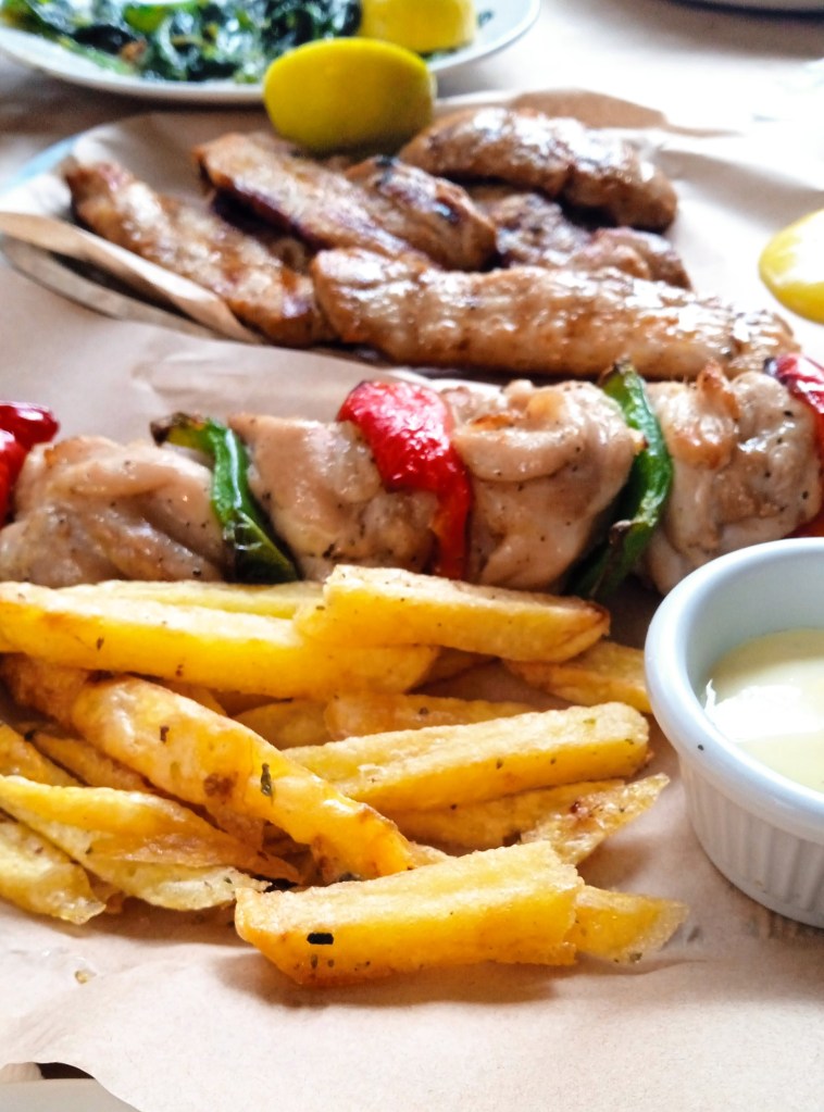 Τα δύο άλλα πιάτα ηταν κοντοσουβλι κοτόπουλο απο φιλέτο μπούτι , ζουμερο και δεμένο με τις πιπεριές αλλα και πανσετάκια με σως μουστάρδας, που με χαρά συνειδητοποιησαμε οτι ηταν υπέροχα και τρυφερά που δεν χρειάζονταν κάν μαχαίρι να κοπούν