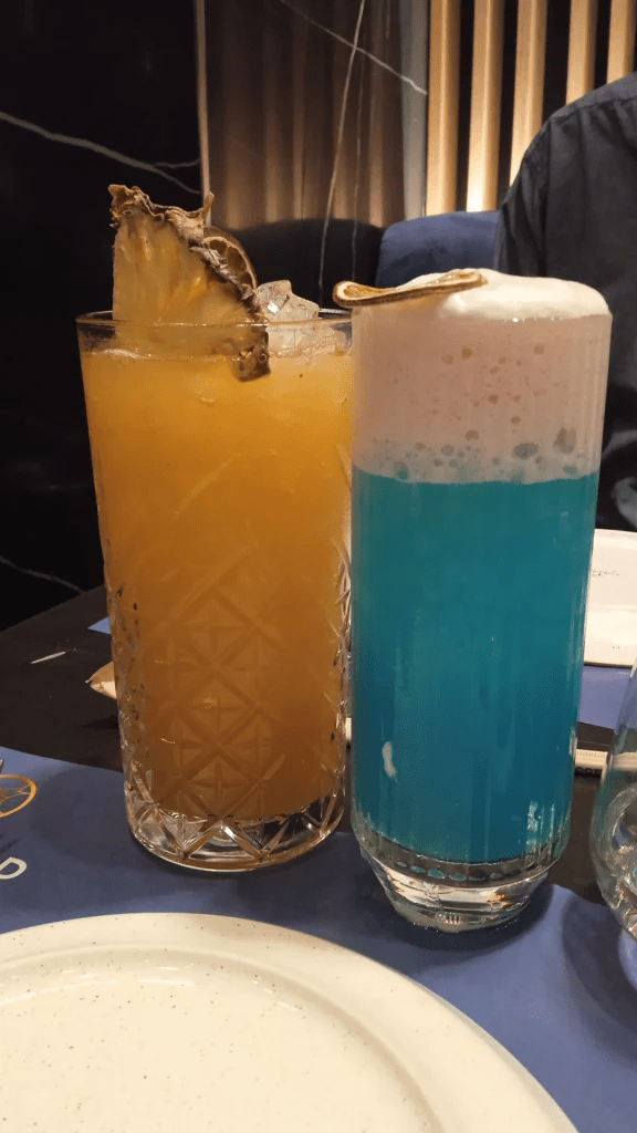 Εξερευνώντας το μενού σου προκαλεί θετική εντύπωση η ενημερωμένη και μεγάλη γκάμα από κρασιά και δεν σταματάει εκεί καθώς η κάβα του μαγαζιού είναι πλήρως ενημερωμένη -συναντάς ακόμα και γιαπωνέζικο ουίσκι! Εμάς μας κέρδισε ωστόσο η πρόταση του σερβιτόρου για 2 signature κοκτέιλ και ήταν απλά θεσπέσια. Το ένα είχε ως βάση τον ανανά και το τζίντζερ και το άλλο είχε ως βάση το τζιν και το ιδιαίτερο ήταν ότι ο αφρός του είχε διαφορετική γεύση από το υπόλοιπο κοκτέιλ!