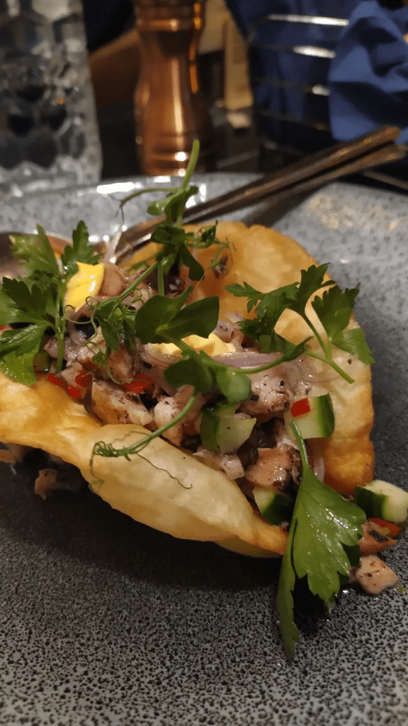 Το μενού είναι αρκετά ενημερωμένο χωρίς να είναι φλύαρο. Extra bonus το asian fusion menu – μάλιστα υπάρχει sushi chef στο πίσω μέρος του μαγαζιού που τα ετοιμάζει όλα μπροστά σου. Εμείς ακολουθήσαμε την συμβουλή του chef που μας πρότεινε ένα ολοκληρωμένο μενού.