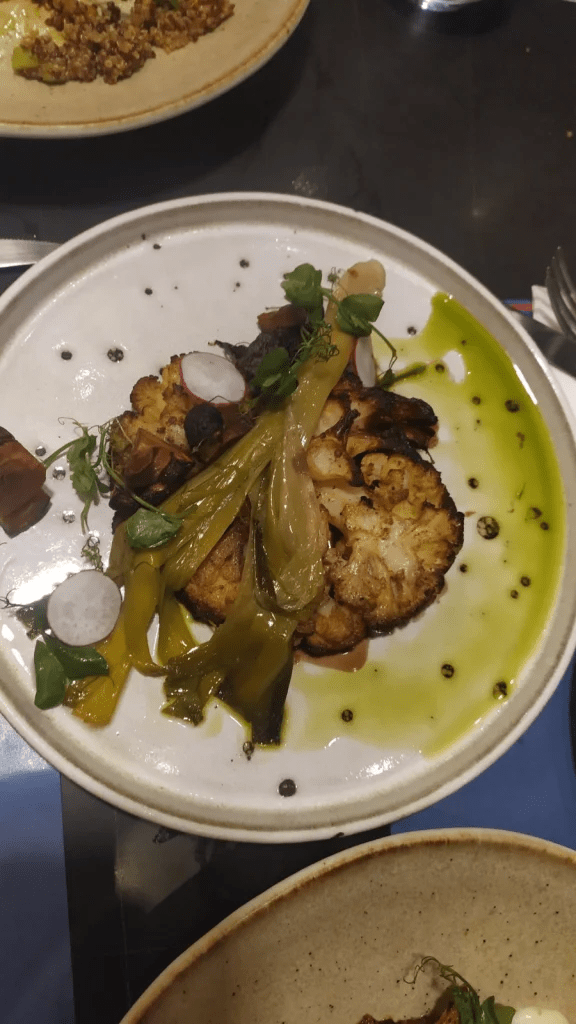 Σειρά είχαν τα κυρίως πιάτα, Το ένα εξ αυτών είναι μάλιστα και χορτοφαγικό. Steak κουνουπιδιού με jous μανιταριών και confit πράσα. ¨Ένα πιάτο που και μόνο αυτό να φας έχεις χορτάσει και με το παραπάνω και δεν χρειάζεται απαραίτητα να είσαι vegan για να το επιλέξεις.