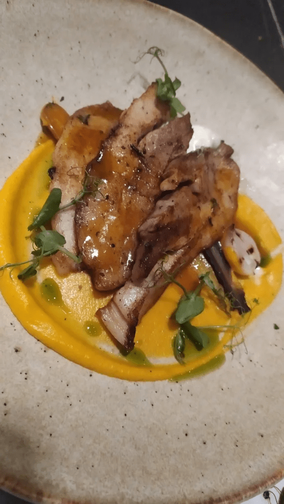 Το αμέσως επόμενο ήταν η χοιρινή πανσέτα σιγομαγειρεμένη σε κενό αέρος με υφές καρότου. Σούπερ ζουμερές και νόστιμες έδεναν τέλεια με το καρότο.
