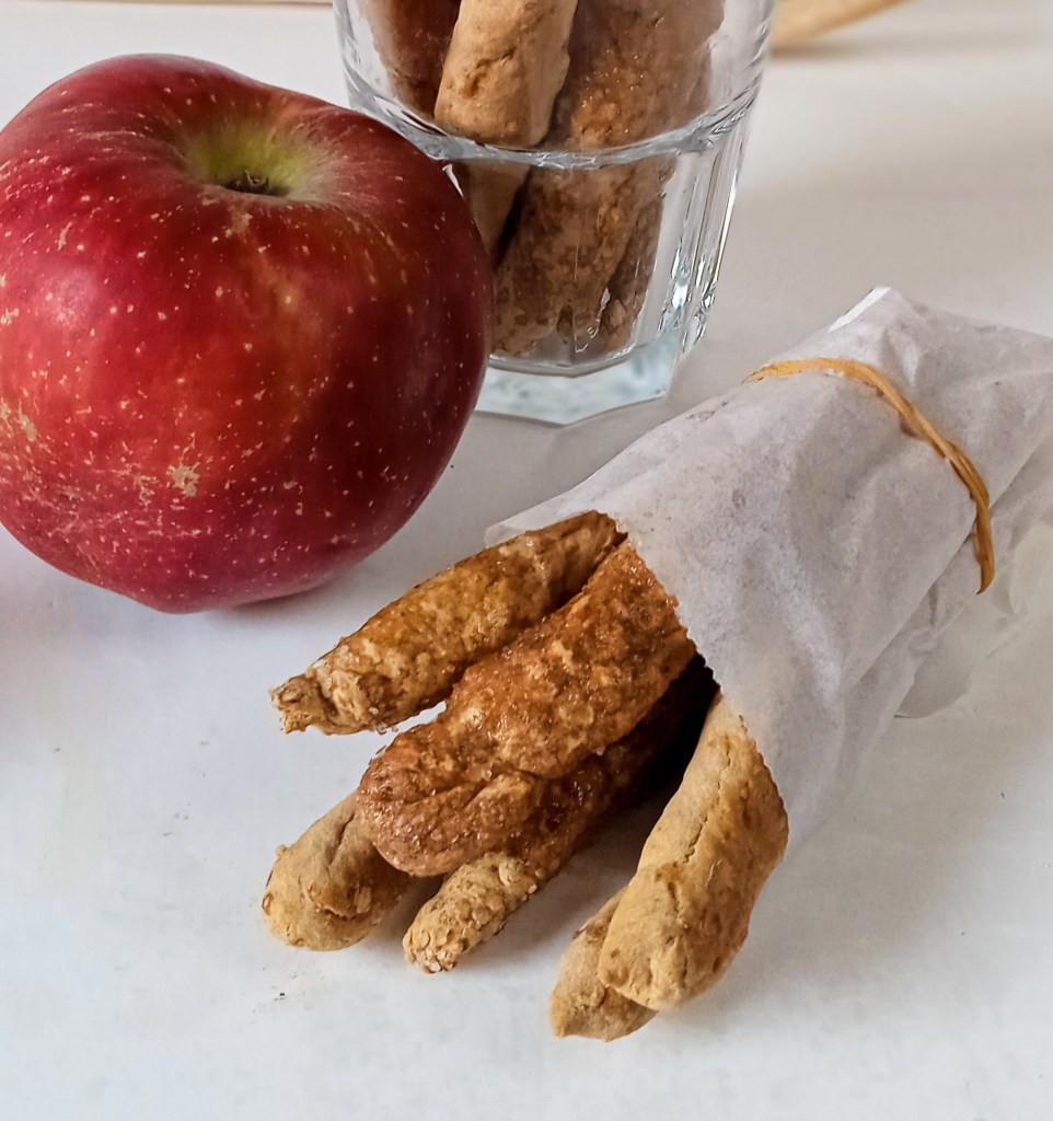 Κάθε περίπου τέτοια σεζόν, ενας αναγνώστης χτυπάει την πόρτα του foodouple.gr και μας ζητάει μια συνταγή να μπορεί να πάρει στην βόλτα με το καρότσι. Επειδή λοιπόν κι εμείς ως γονείς τα έχουμε περάσει αυτά και γνωρίζοντας το ντόρο που δημιουργείτε , βασιστήκαμε λοιπόν στην διάσημη συνταγή μας για κριτσίνια μπανάνας και φτιάξαμε ένα νέο προϊόν με μήλο αυτή την φορά .