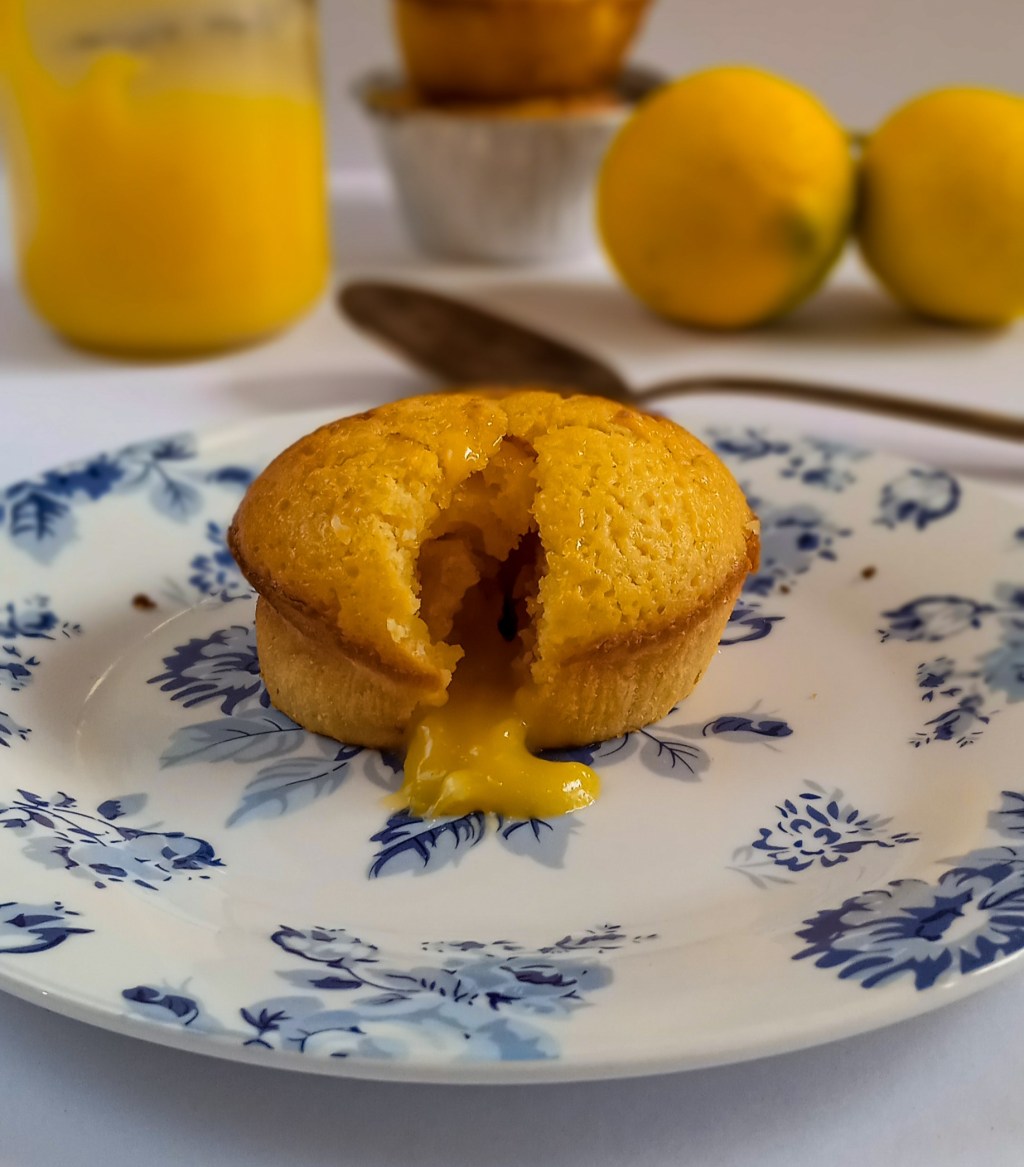 Αφαιρούμε από τις θήκες και με την βοήθεια μιας σύριγγας ή ενός κορνέ βάζουμε στα κεκάκια στην μέση την υπόλοιπη lemon curd.