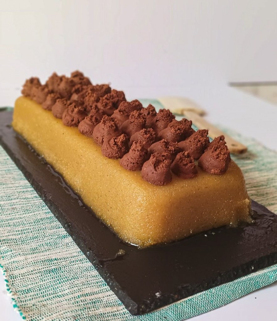 Χαλβάς σιμιγδαλένιος με μους σοκολάτας. Νηστίσιμος, βίγκαν, πεντανόστιμος εναλλακτικός . Ο χαλβάς ο σιμιγδαλένιος έχει την ίδια συνταγή στην μακραίωνη ιστορία των χαλβάδων. Η συνταγή λέγεται 1-2-3-4 και αντιστοιχίζεται σε 1 κούπα λάδι, 2 κούπες σιμιγδάλι, 3 κούπες ζάχαρη και 4 νερό. Εδώ πρώτον στον μεταφράσαμε σε γραμμάρια – τον κάναμε και λίγο πιο ελαφρύ- αλλα του προσθέσαμε και μια μους σοκολάτα πολύ βάιραλ στα μίντια και στους κύκλους των βίγκαν. Τι θέλουμε να πετύχουμε με αυτό; Μα να σου δώσουμε μια ιδέα για τούρτα για όλους εσάς που γιορτάζετε την Σαρακοστή.