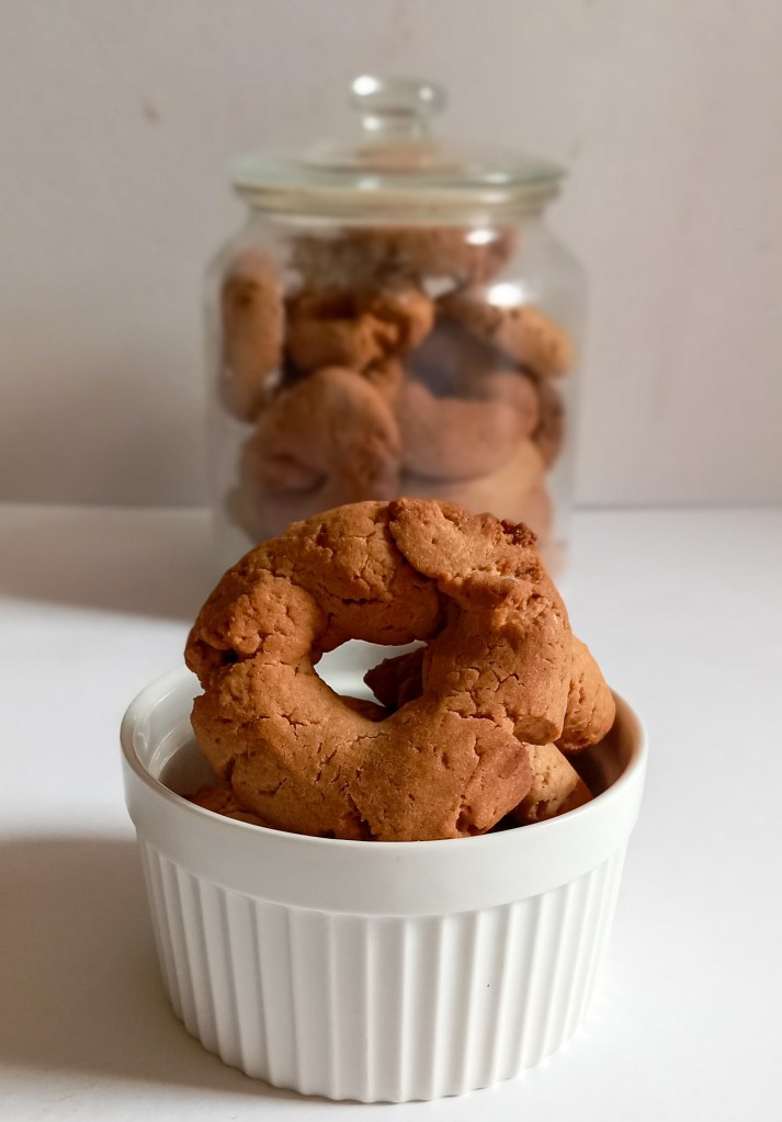 Ψήνουμε στους 180 βαθμούς αέρα για περίπου 20 λεπτά! Ανάλογα πόσο μαλακά ή σκληρά τα θέλουμε πλάθουμε σε πιο ‘χοντρά’ κουλουράκια!
